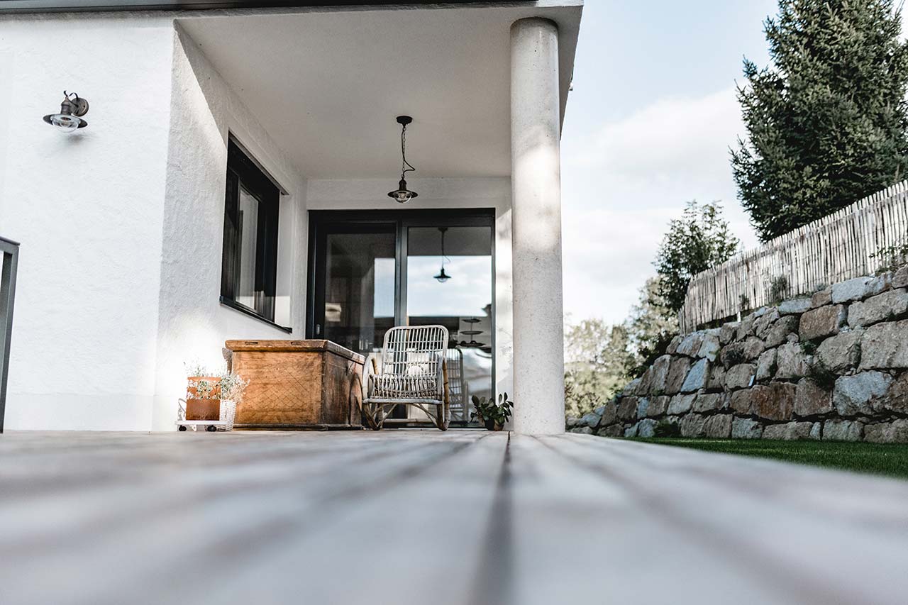 Bau: Frühjahr 2017 Motto: auch bei Regen trocken ins Haus kommen Unverwechselbarkeit: große Terrassen, sowie großzügiger Balkon