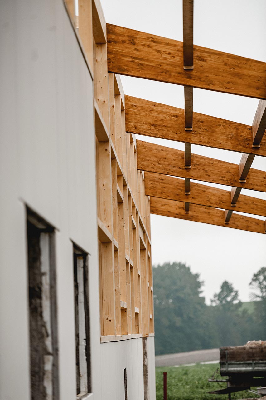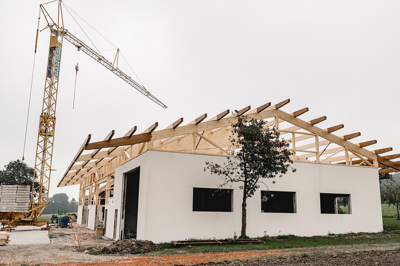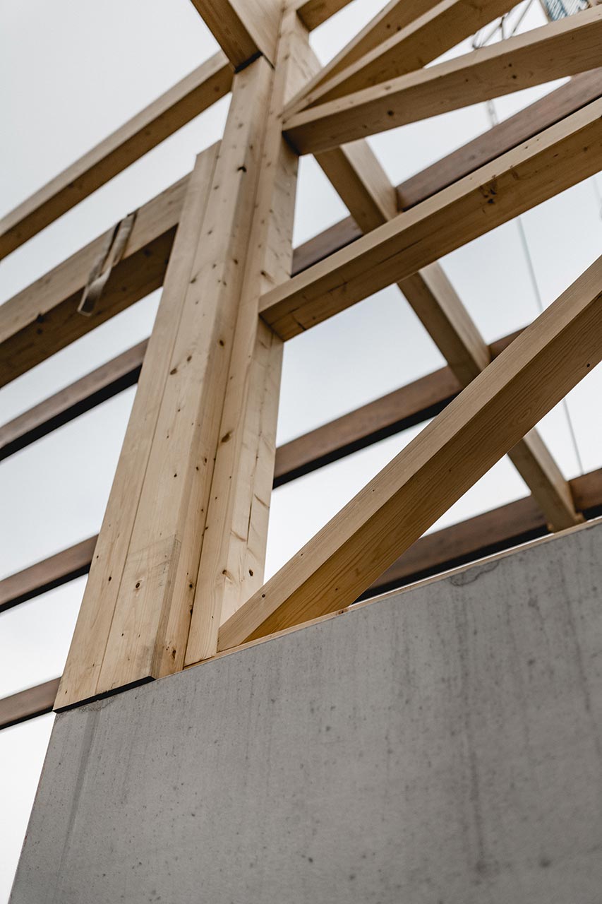 Bau: Frühjahr 2020 Besonderheit: Betonmassiv- und Holzriegelbauweise vereint Bögl-Team: Maurer, Spengler, Zimmerer