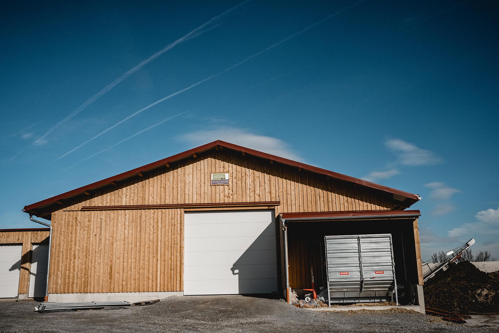 Bau: Sommer 2019 Besonderheit: Holzmassivbauweise für einen Milchviehbetrieb sowie 3 Garagen Bögl Team: Maurer, Zimmerer, Spengler